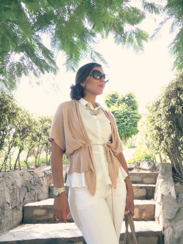 Este es un look bien formal, ya que es un conjunto de blusa & pantalón. Pero a cualquier conjunto básico puedes agregarle un twist como hice yo en este caso: la típica blusa blanca en este caso es estilo peplum, y el pantalón tiene un print floral muy colorido! Dos tendencias fuertes este verano! Y sin alterar la etiqueta de vestimenta de trabajo. Qué les parece la idea??